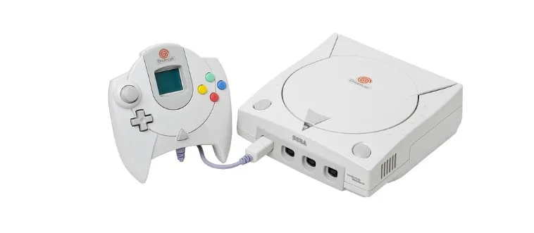 Which console, released by Sega in 1998 in Japan but 1999 in the U.S., was the first to include built-in internet support?