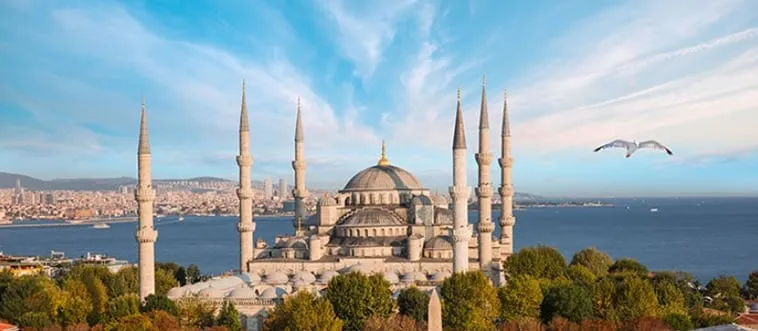 The Blue Mosque, with six minarets and intricate blue tiles inside, is a 17th-century Ottoman masterpiece. Which country?