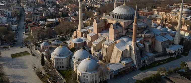 The Hagia Sophia, a domed marvel that served as church, mosque, and museum, blends Byzantine architecture. Which country?