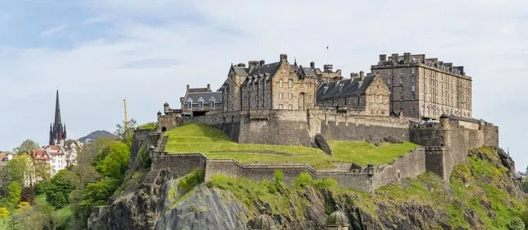 Which city crowns Edinburgh Castle on volcanic rock?