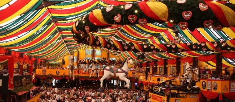 Which city hosts Oktoberfest with beer tents?