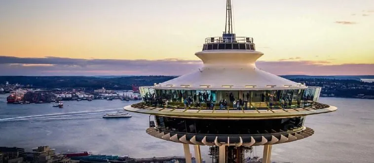 Which city towers with Space Needle views?