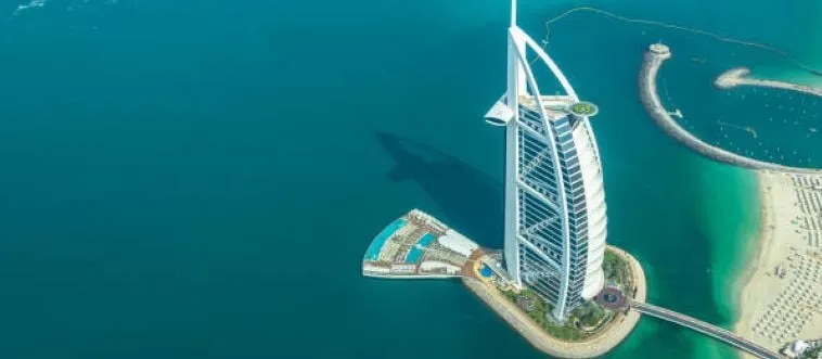 Which city dazzles with Burj Al Arab's sail hotel?