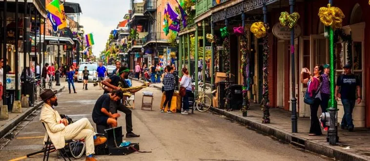 Which city vibes with jazz in French Quarter streets?