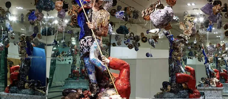 Which K-pop artist is represented in this bold sculpture by Osang Gwon?