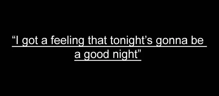 Where does the lyric “I got a feeling that tonight’s gonna be a good night” come from?