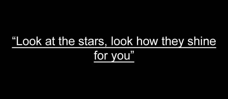 Where does the lyric “Look at the stars, look how they shine for you” come from?