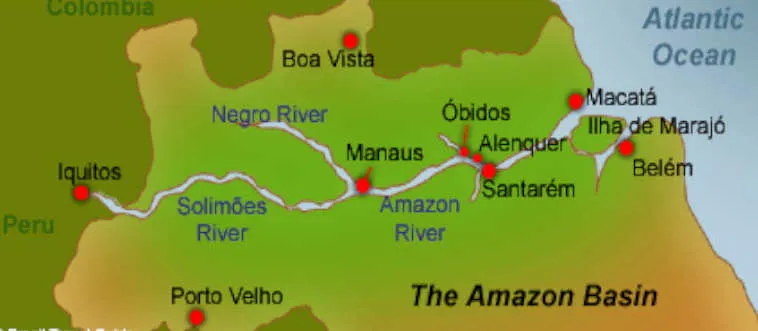 Many nations drink from the same mighty river—count the Amazon’s path!