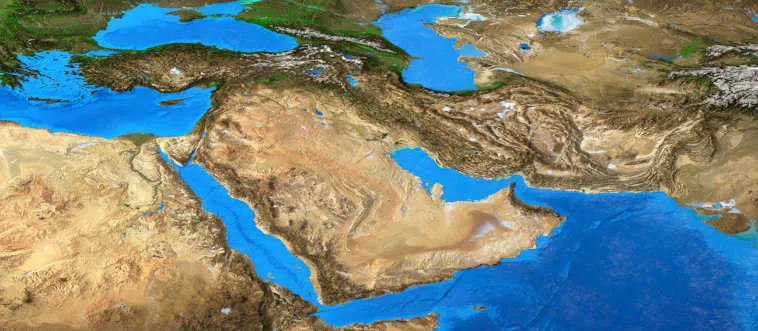 Jutting into the Arabian Sea, this vast landmass hosts oil-rich states.