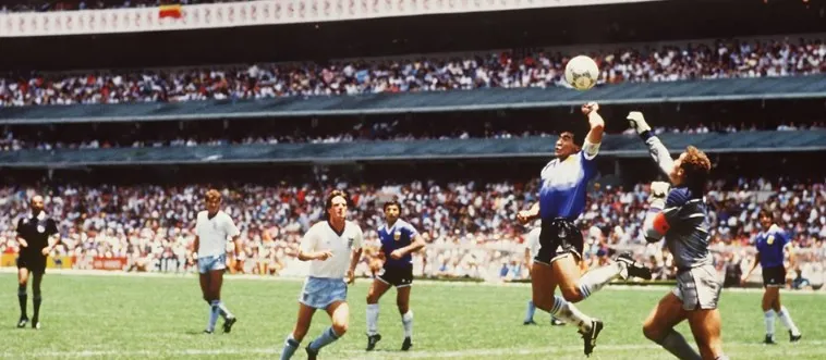 Which player scored the famous "Hand of God" goal in the 1986 World Cup?